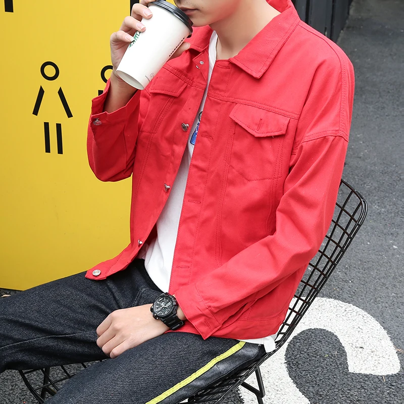 Product Name : Classic Man Casual Solid Slim Denim Jackets Young Men Red Fashion Jeans Jacket Male Quality White Outside Personal Street Wear